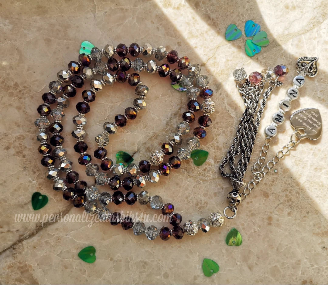 Crafted with precision and care, each charm showcases vibrant round beads delicately strung together to spell out your name or the name of your loved one. Whether you're accessorising a Tasbih, Phone Charm, or keychain, these charming creations add a unique touch to any collection. They're perfect as thoughtful gifts or delightful additions to your own Tasbih collection.