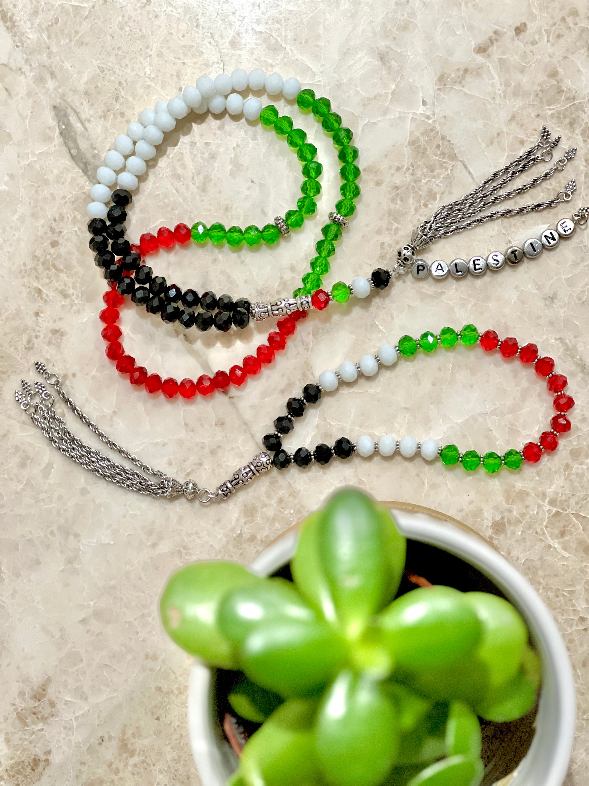 Discover the beauty of compassion with our new Palestine Tasbih collection. Each Tasbih is not just a symbol of faith but a beacon of hope for the resilient children of Palestine. In our commitment to making a meaningful impact, ALL proceeds from this collection will be dedicated to the Palestine Children's Relief Fund (PCRF) charity. Join us in spreading love and making a difference in the lives of those who need it the most. Your purchase today supports a brighter tomorrow for the children of Palestine.