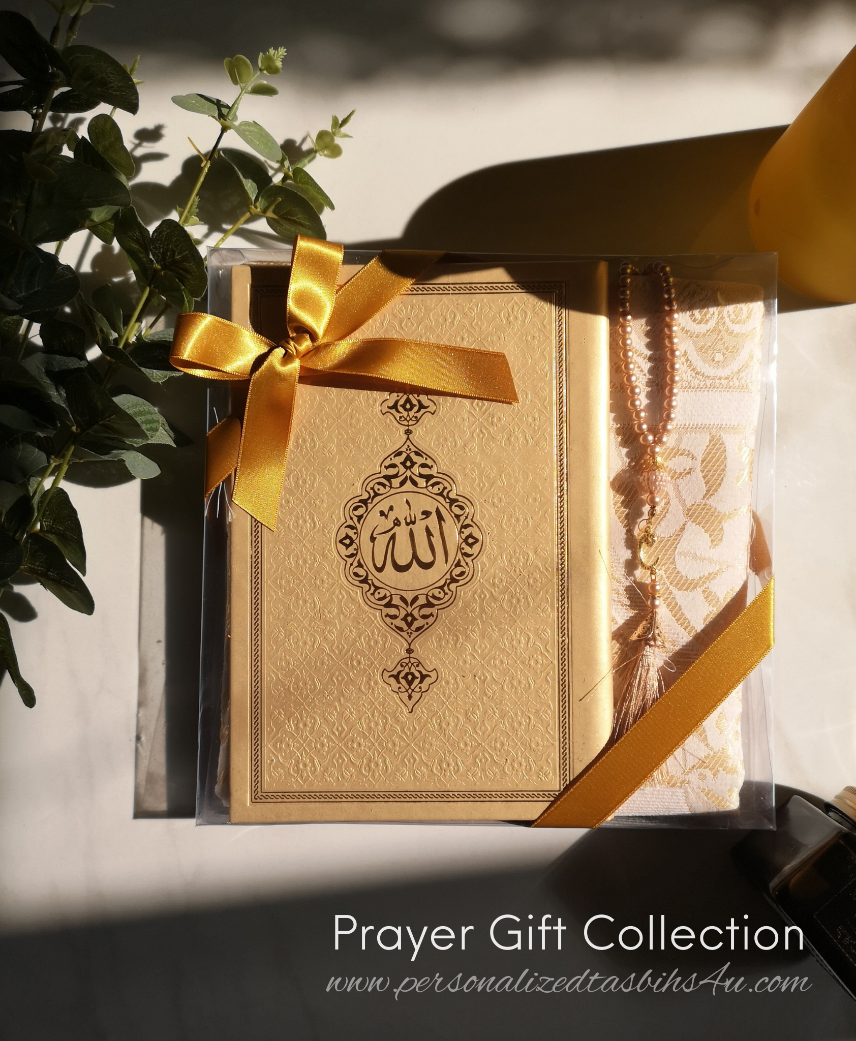 Comprising of Prayer Mat, Tasbih and Prayer Book (Surahs: Yasin, Baqarah and Kahf) - please note this is not a full Quran.