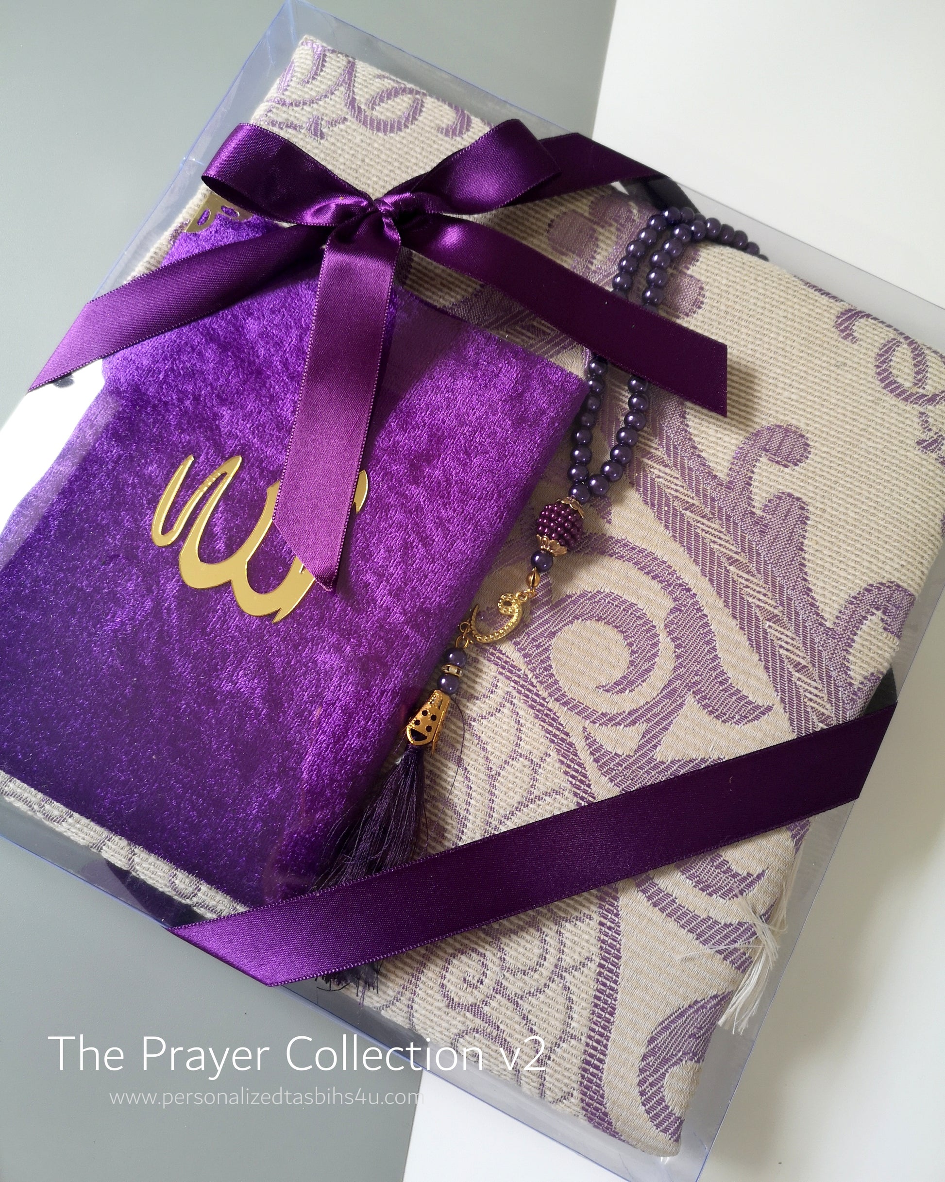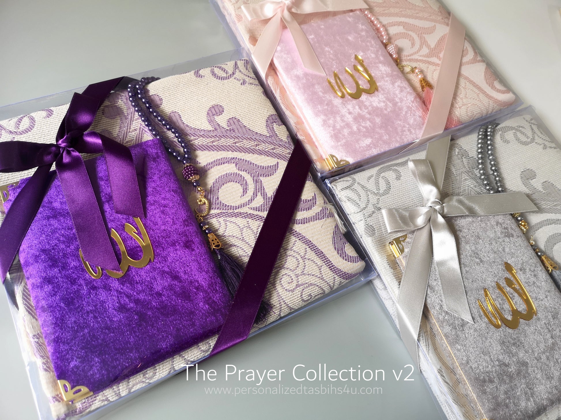 Our brand new Prayer Collection v2, comes in six different colours - comprising of Prayer Mat, Tasbih and Prayer Book (Surahs: Yasin, Baqarah and Kahf) - please note this is not a full Quran.